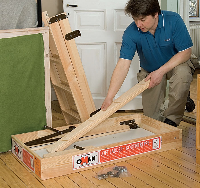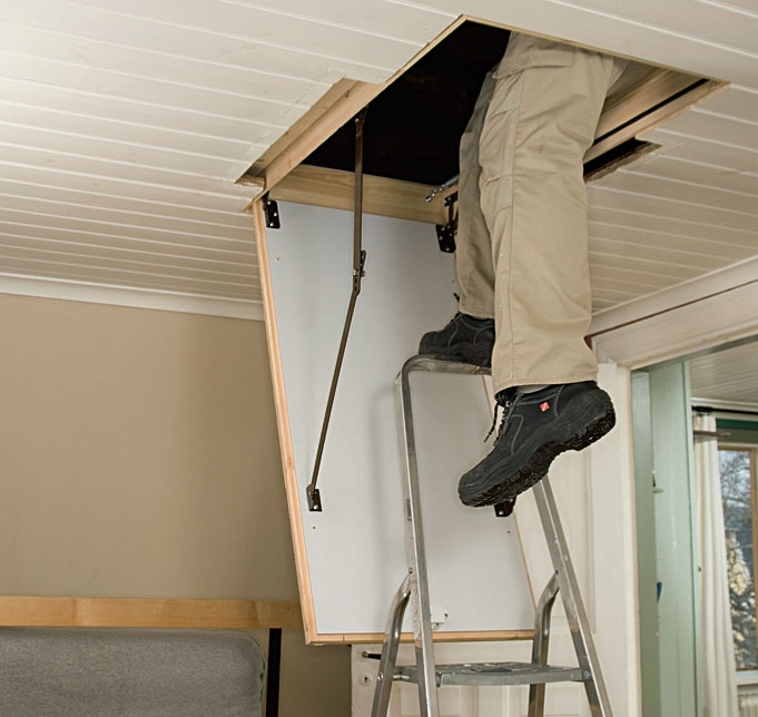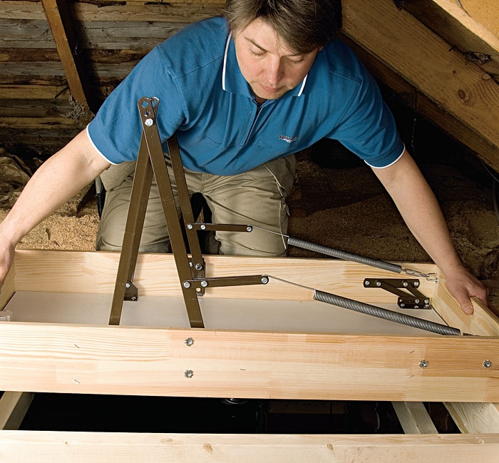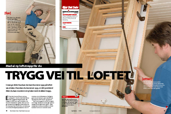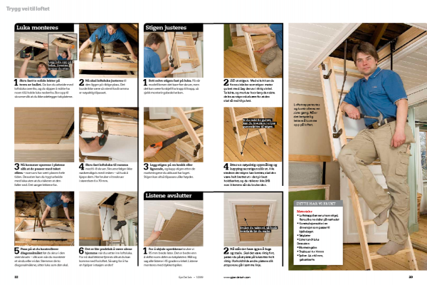 Sjekk bruksanvisningen. Loftstrappa er innkjøpt. Det er en type som ofte blir brukt i moderne hus, men det er ikke til hinder for at vi monterer trappa i vårt gamle hus. Les monteringsveiledningen!