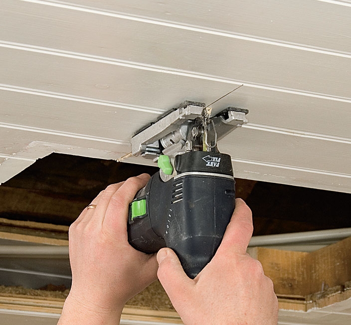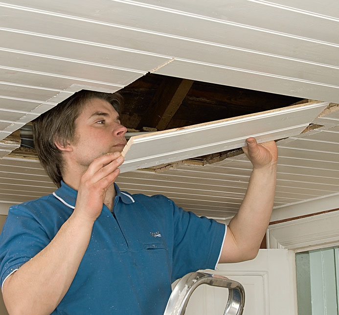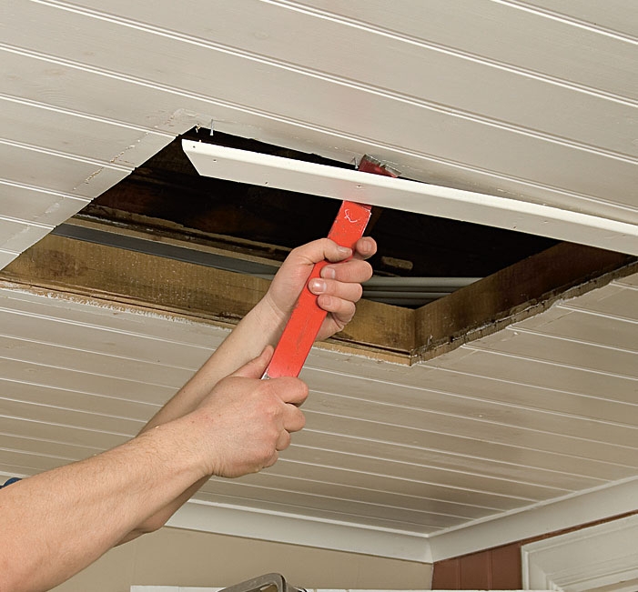 Fjern de gamle listene fra himlinga. Pass på at det ikke sitter spiker eller skruer i veien når du skal sage ut til den nye loftsluka.