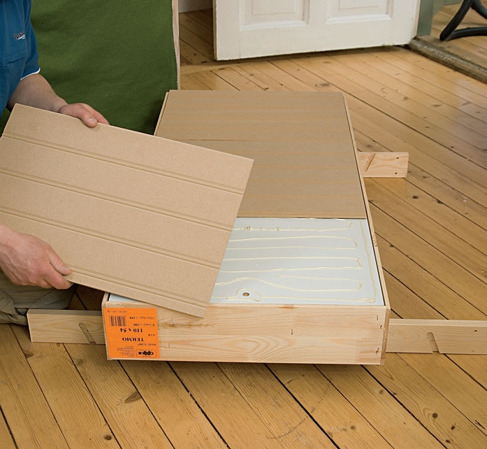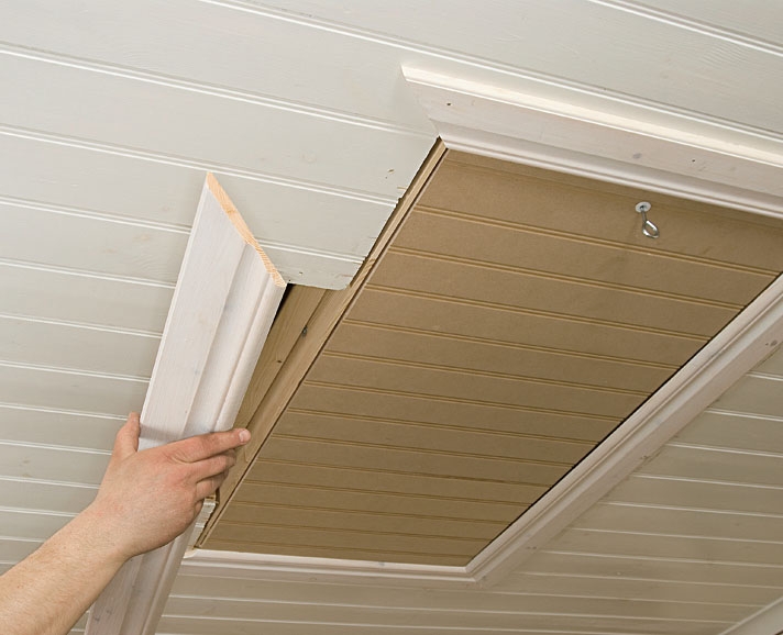 Mål loftsluka og avstanden mellom takbjelkene. Sag til ramma som skal sitte rundt luka. Er loftet fylt med løs isolasjon, må du også lage ei ramme av for eksempel kryssfinér slik at isolasjonen hindres i å drysse ned.