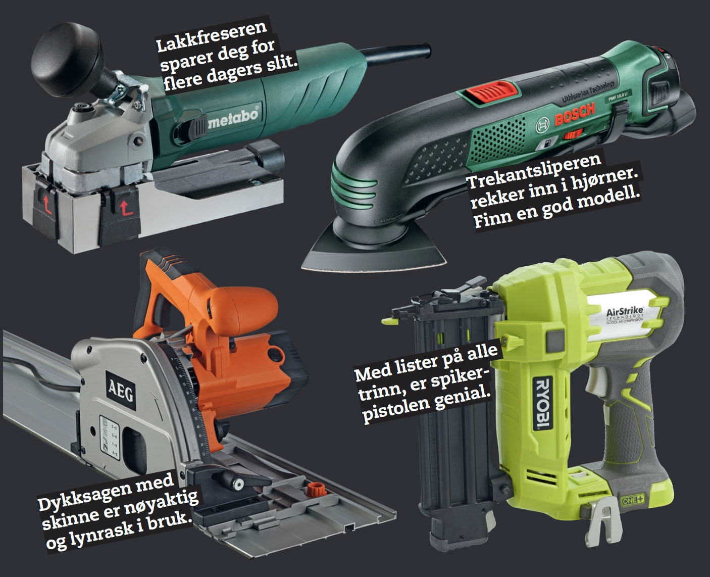 Lakken i hjørnene fjerner du med grovt slipepapir på trekantsliperen, korn 40 eller enda grovere. Med grovt papir utligner du også nivåforskjellene som eventuelt har kommet ute i kantene.