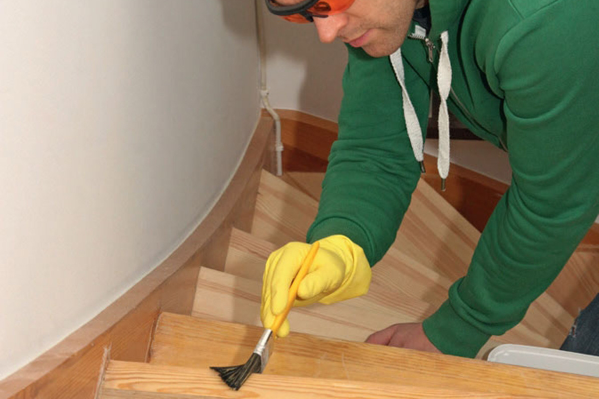 Stryk de nyslipte trinnene med trelut. Moderne trelut kjøper du hos fargehandleren - husk å sjekke om du får en til løvtre eller nåletre. Følg anvisningen med tanke på tid og mengde - og husk å beskytte øyne og hud mot luten.
