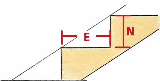 Den skrå håndlista (N) i trappa sages til - det skrå snittet i meglerne skal ligge så langt inne at endetreet ikke kan utsettes for unødig fuktighet.