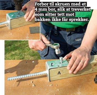 TIPS: Hold feltet og rammen sammen med en tvinge mens du setter inn skruene. Da forskyver ikke tingene seg.