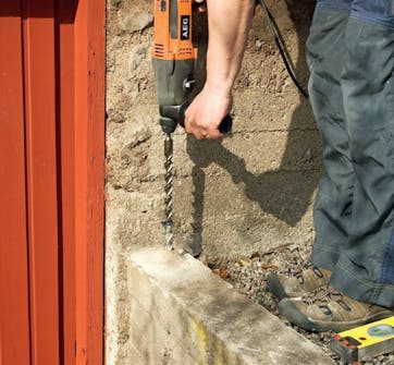Hullet bores med en borhammer. Det krever en god maskin og et 22 betongbor. Maskinen kan leies. La den jobbe seg stille og rolig ned, og sug gjerne opp støvet iblant. Få evt. en makker til å hjelpe deg å holde vinkelen.