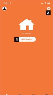 - Legg til en enhet ved å klikke på Add Device [1]. Hvis du allerede har tilføyd enheter, står de på en liste, mens nye i stedet legges til ved å klikke på pluss [2].