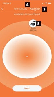 - Klikk på fanebladet Auto Scan [3], og vent til enheten din dukker opp. Du kan også legge til manuelt [4] ved å velge enheten på en liste, men det er litt vanskeligere. Prøv Auto Scan igjen, og flytt eventuelt støpselet og ruteren nærmere hverandre hvis det ikke virker første gang. Klikk på støpselet ditt [5].