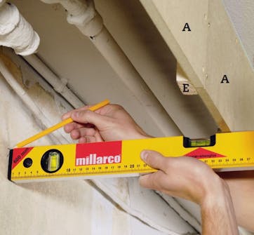 Målene på inndekkingen rundt rørene finner du ved hjelp av en tommestokk og et vater. Undersiden av rørene er ikke vannrette, så ta mål flere steder for å være sikker på at det er plass til rørene alle steder. Husk å sikre plass til evt. spotter.