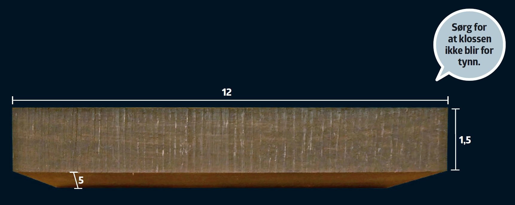 Sett et borstopp på bormaskinen, eller sett en teipbit rundt selve boret. Hullene skal være 2 mm kortere enn tykkelsen på klossen - de siste 2 mm fjerner vi med stemjernet senere.