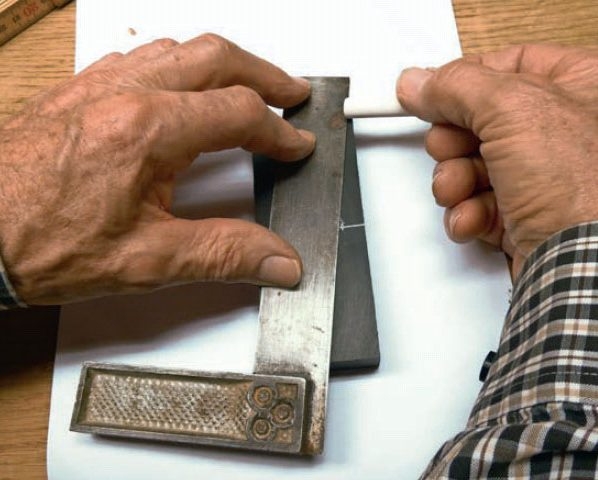 Med et bredt stemjern markerer du forsiktig kantene med et slag. Kantene skal være helt loddrette.