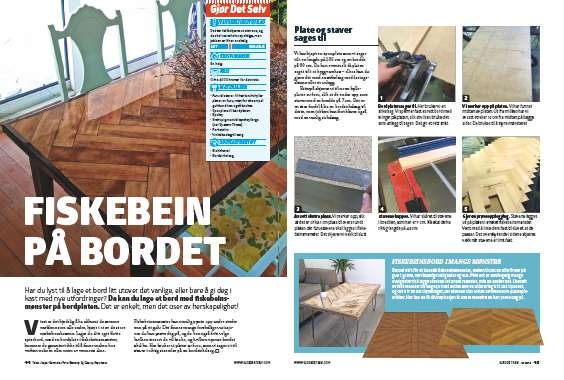 Vi bygger et bord fra A til Å, derfor lager vi også sarg og bein. Du kan velge å lage ditt eget fiskebeinsbord fra bunnen av, eller legge staver på en ferdig bordplate med bein. Det finnes forskjellige løsninger til å sette fast beina til sargen. Det kan blant annet gjøres ved å montere gjengestenger i beina og skru dem fast gjennom sargbeslagene med muttere.