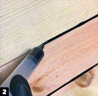 Epoksyen påføres med sprøyte. Ganske forsiktig fyller vi mellomrommene mellom stavene med epoksy. Pass på ikke å sprøyte inn for mye.