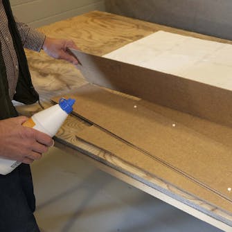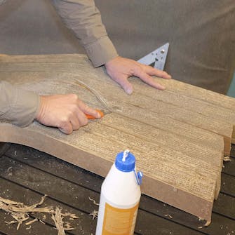 Fjern limrester fra masonitt og papp med en hobbykniv. Noen steder er det også små ujevnheter mellom papplagene. Disse kan du også glatte ut med en skarp kniv.