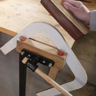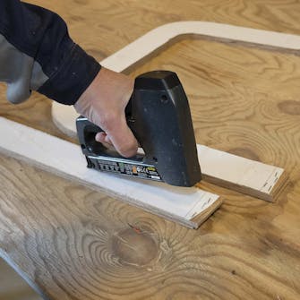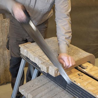 De limte delene justeres pent med kniv og håndsag før du til slutt monterer ryggstøtten og setet med sykkelslanger.