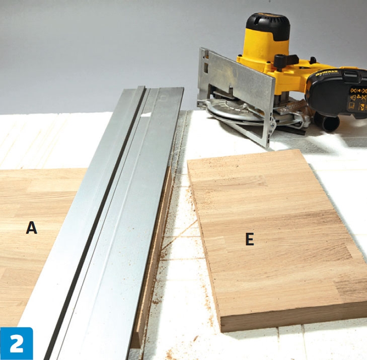 Skjær ut platene i de valgte målene. Dykksag og føringsskinne gir nøyaktige og flotte snitt i treet, men en sirkelsag langs et rett anlegg kan også fint brukes.