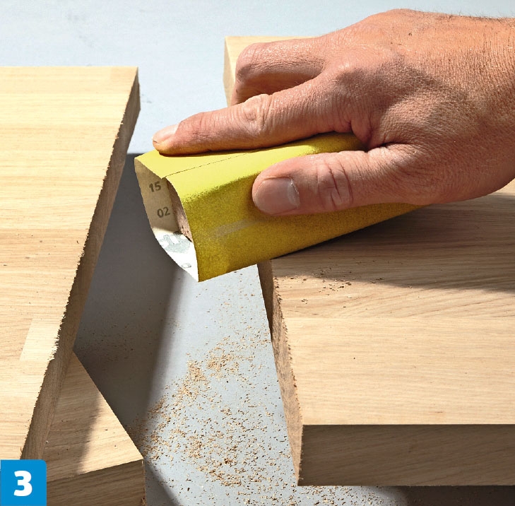 Slip kantene grundig. Kantene på platene slipes glatte med slipepapir i korn 80 eller korn 120 på en slipekloss.