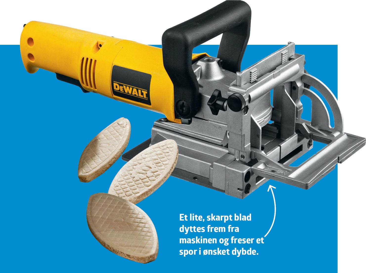 Nå kommer det morsomme! Når emnene er saget til, skal vi nemlig i gang med lamellfreseren. For de fleste er lamellfreseren kanskje litt eksotisk, men maskinen er enkel å bruke.