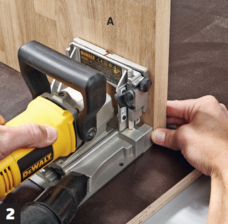 Hold lamellfreseren tett mot kanten. På alle de platene du skal sette sammen, holder du freseren mot kantene og markeringene. Da vet du at ting vil passe sammen.