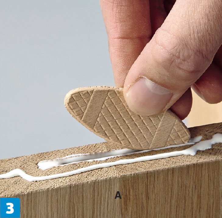 Utfresingene fylles med lameller. Legg også lim på kantene, der elementene skal limes sammen. Lamellene presses ned i limet. De vil utvide seg cirka 25 prosent når de trekker til seg fukt fra limet.