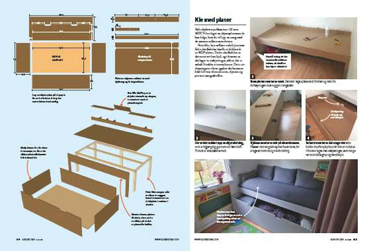 Hele skjelettet pakkes inn i 16 mm MDF. Vi har laget en skjæreplan som du kan følge, hvis du vil lage en seng med de samme målene som denne. Hvis ikke, kan målene enkelt justeres.