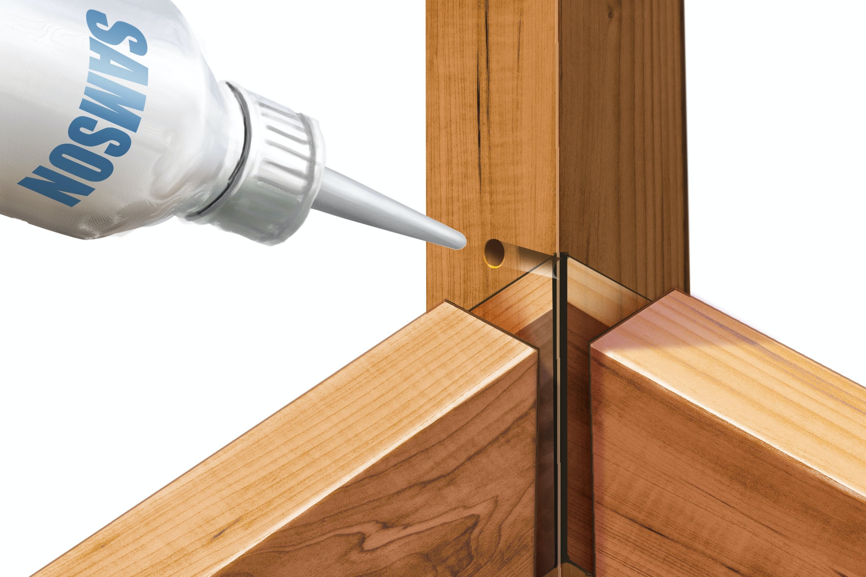 fra en limflaske som har spissen skåret til.