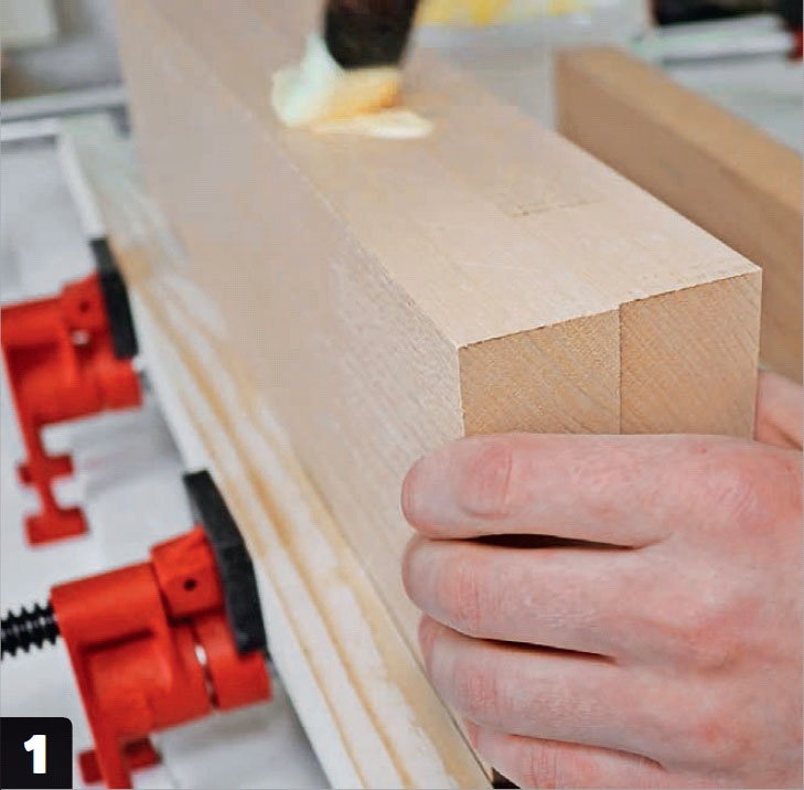 Vi limer sammen tre emner til bein. For å få beina i riktige mål, setter vi sammen flere emner. Smør lim på flatene med en pensel.