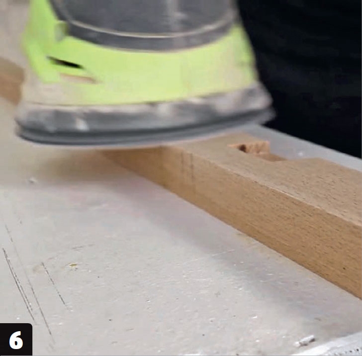 Treet slipes helt glatt når du er ferdig med å frese. Det gjelder både for lameller og bein, som slipes med korn 180 med en eksentersliper.