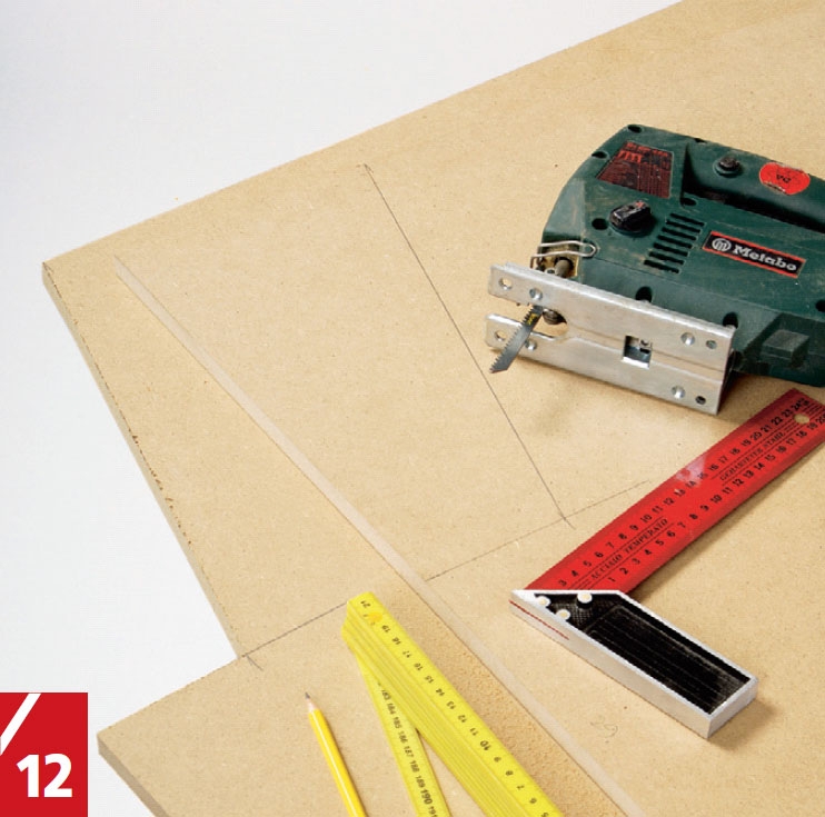 Gjør klar sidene til baren. Tegn utskjærin-gene etter målene på tegningen. Sag så ut med ei stikksag, og slip kantene på platene.