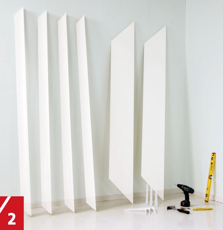 TIPS: Sett skruene der hvor skapene skal plasseres slik at de ikke blir synlige.