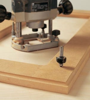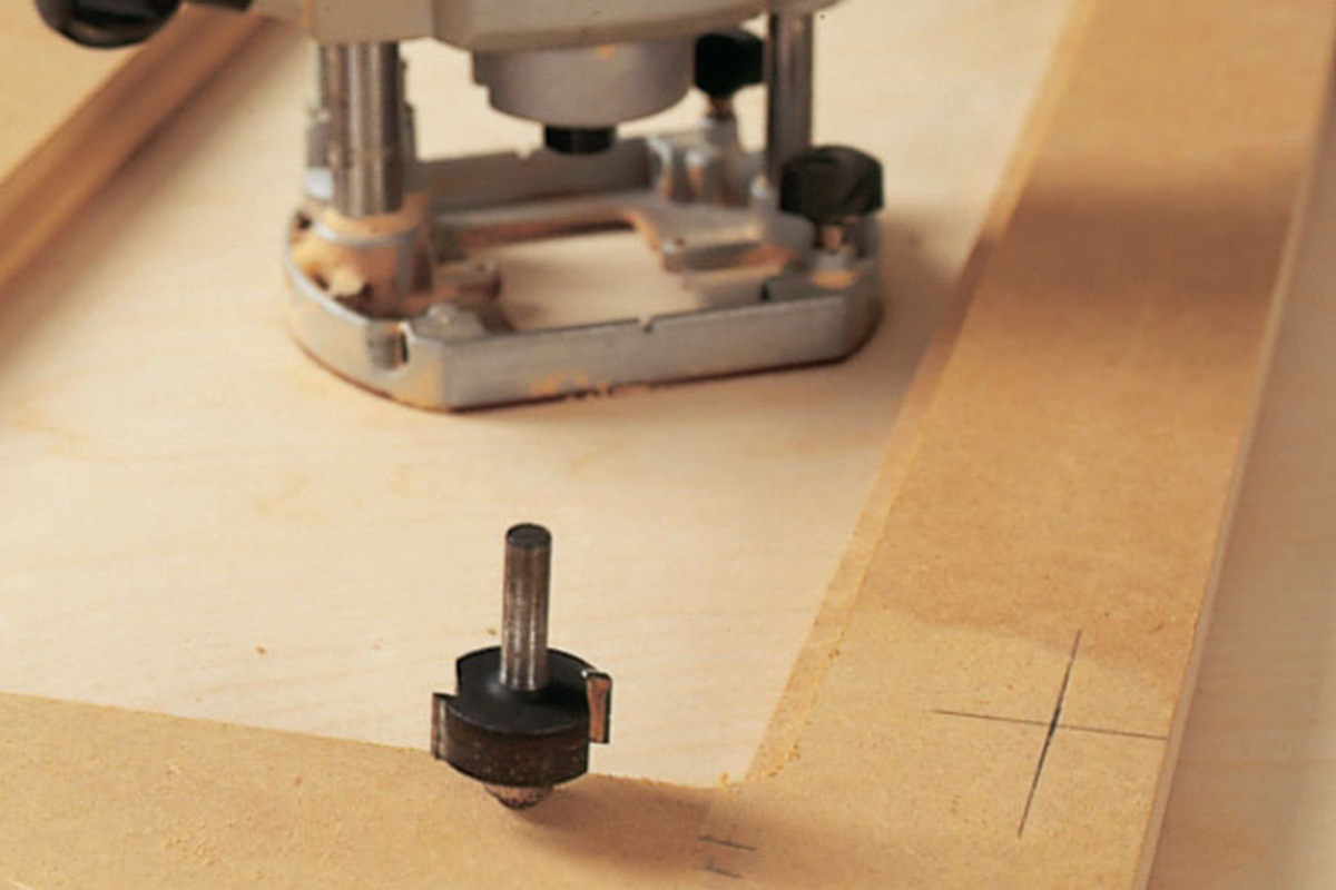Når du har satt sammen de enkelte dørene, freses både de inn- og utvendige kantene på fronten. Til fresingen kan du som her bruke et hulkiljern med styretapp.