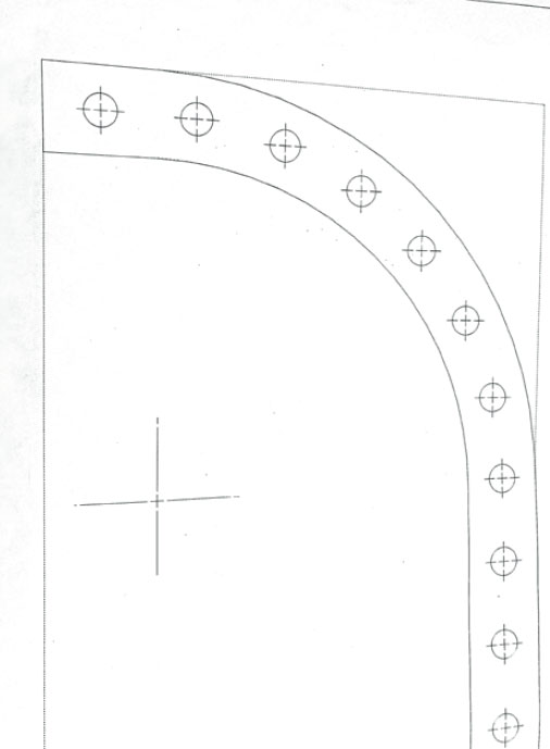 Merk opp rundingene (B og D) ved hjelp av en mal, slik at de blir helt like i begge sider. Skjær ut rundingene (B og D). Første runding (B) rettes til på fresebordet og brukes som mal for de neste (B og D).