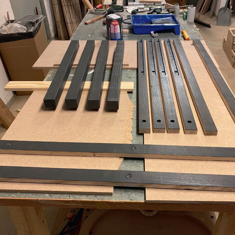 De to delene limes og skrus sammen ved hjelp av de avrundede MDF-profilene og et par loddrette lister.