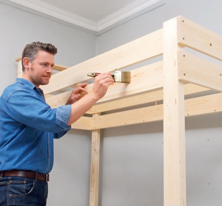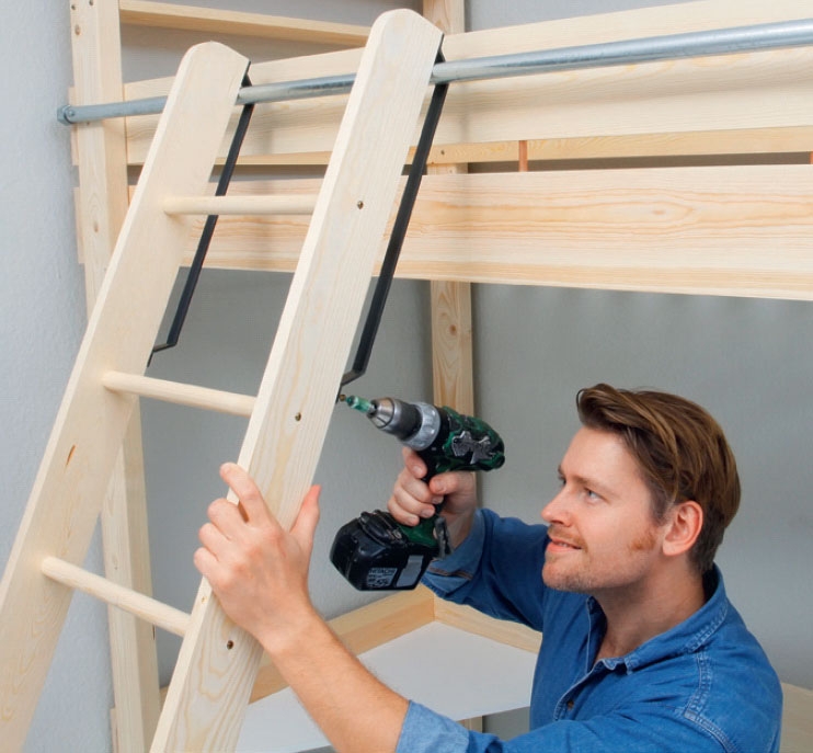 De små bordplatene stabiliserer sengen, men først og fremst skal de fungere som bord. Derfor innretter du høyden etter sengens beboer. Da bærelistene er limt på undersiden av bordplatene og bare skrus inn i gavl- og sidebord, er det heldigvis enkelt å endre høyden i takt med at barnet ditt vokser.