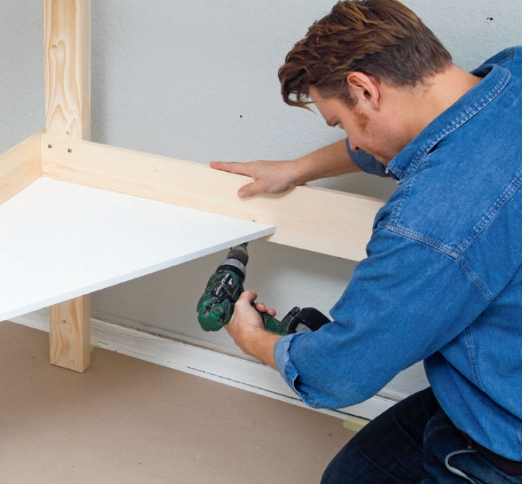 Den boremalen du bygger av en trekloss og to lister, er like viktig for å bygge raskt og nøyaktig: Gjennom den forborer du til alle synlige skruer.