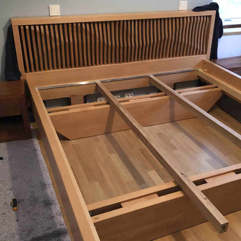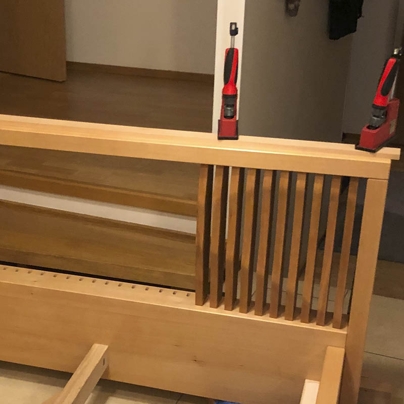 Først når dette er gjort, kan sengegavlen til slutt limes sammen.