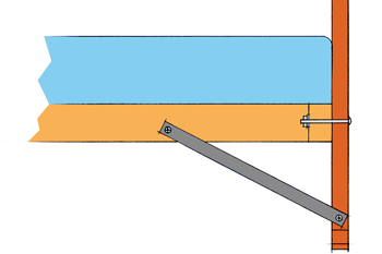 Det må en stiv konstruksjon til, slik at hodegjerdet ikke kan bevege seg mot kanten av madrassrammen. Du har bruk for en avstivende trekant. Den kan du lage ved å skru en diskretlist eller noe lignende mellom den nederste delen på hodegjerdet og madrassrammen – for eksempel 50 cm inn på rammen til madrassen.