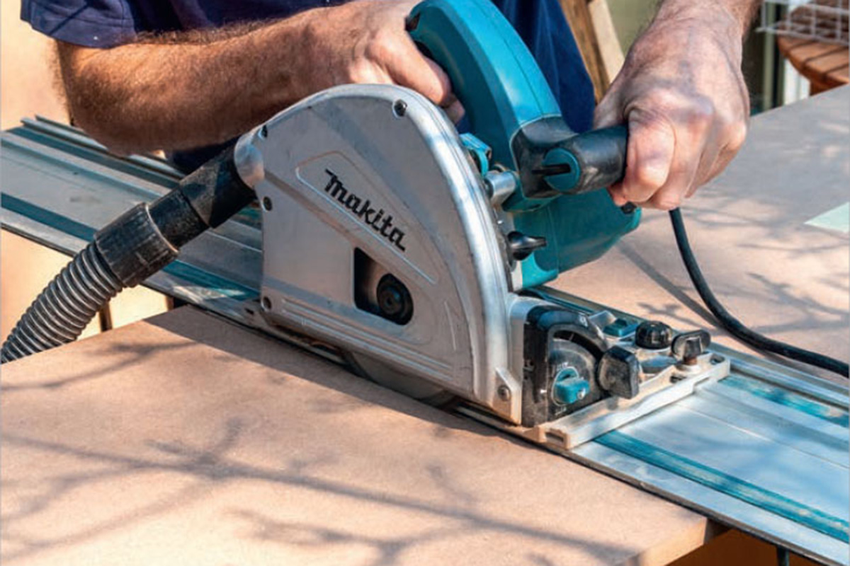 Skyvedørene og elementene sages ut. Snittene skal være nøyaktige. Bruk en dykksag eller sirkelsag med føringsskinne.