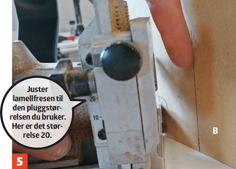 Vi velger å bruke lamellplugger for å sette sammen delene, men du kan også velge å skru med vanlige 4 x 40 mm spon-skruer. Velger du skruer, skal du huske å forbore.