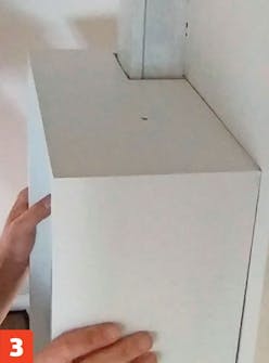 Nå er du så godt som klar til å henge skapet over det du vil skjule. Men først skal du montere hengselsbeslagene til døren på skapet.