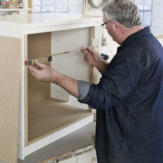 Det er enklest å tilpasse dørene før du maler dem. Legg dem oppå frontrammen på et bord eller på bukker, og strek opp.