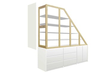 Som du kan se, består skapet i utgangspunktet av en frontramme, en kledd enderamme, dører og gjennomgående hyller. Alt er plassert på ferdigkjøpte kommoder, der den ene i vårt tilfelle måtte endres litt på grunn av en radiator.