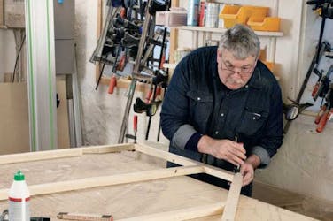 Når samtlige bladskjøter er stemt ut, er det en god idé å prøvesamle hele rammen, og kontrollmåle en siste gang. Deretter settes rammen sammen med rikelig med snekkerlim i alle skjøter. Sørg for at skjøtene er tette, og sjekk flittig med tommestokk og vinkel.