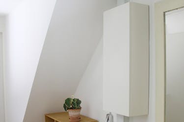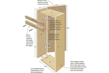 Nå er du så godt som klar til å henge skapet over det du vil skjule. Men først skal du montere hengselsbeslagene til døren på skapet.