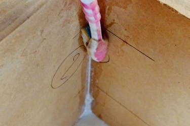 Det er først nå vi lager hull til den gjennomføringen som skal inn i skapet. I dette tilfellet må vi lage plass i både bunnen og toppen av skapet.