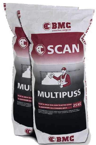 Pussen trekkes på nedenfra og opp med en bred sparkel. Det første laget skal være litt tynt. Puss vått i vått.