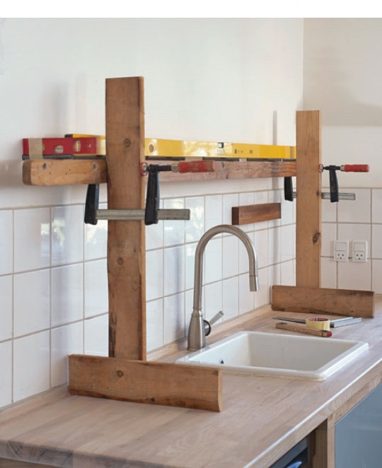 Gjengestengene kappes til og stikkes inn i hyllen, slik at du kan se om hullene er nøyaktig i rett vinkel. Hvis ikke, er det beste å bore et nytt hull tett på det som er blitt skjevt.
