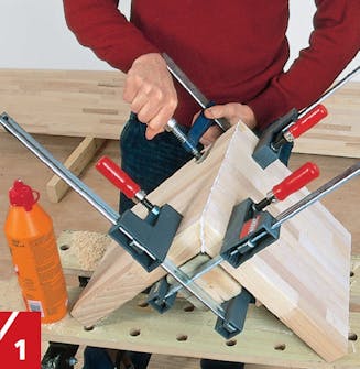 Montér nå delene - du får trolig bruk for en hammer og en kloss. Press delene sammen, og spenn dem fast med skru tvinger og en firkant.