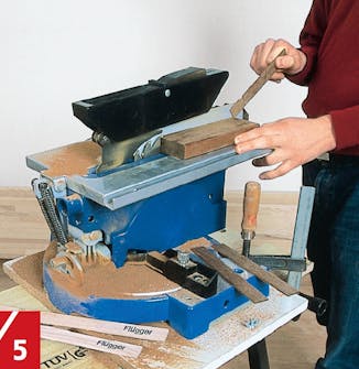 Når limet er tørt, sager du av de overskyten de delene av stengene med ei fintannet sag. Legg et pappstykke med et spor under saga.