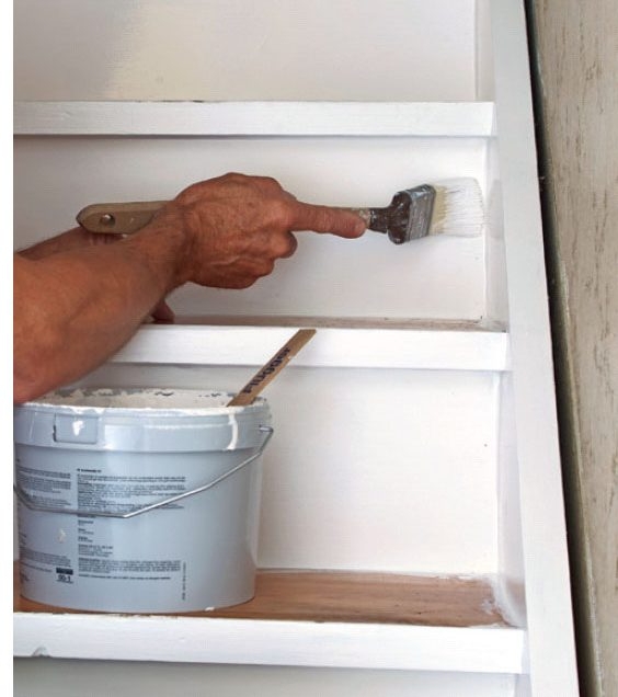 Gi vanger og stusstrinn et strøk heftgrunn av samme merke som sluttmalingen. Hvis du vil male den vannrette delen av trinnet, skal det også ha grunning.