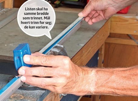 Lim på listene. Sørg for at trinnforkanten er renset, for eksempel med trerens, og lim på listen med monteringslim.