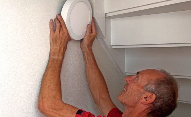 En lyssterk, flat og stilren LED-lampe erstatter den gamle, tradisjonelle plastkuppelen med glødepære. Lampen passer perfekt til det nye utseendet, og den gir et godt grunnlys i hele trapperommet.